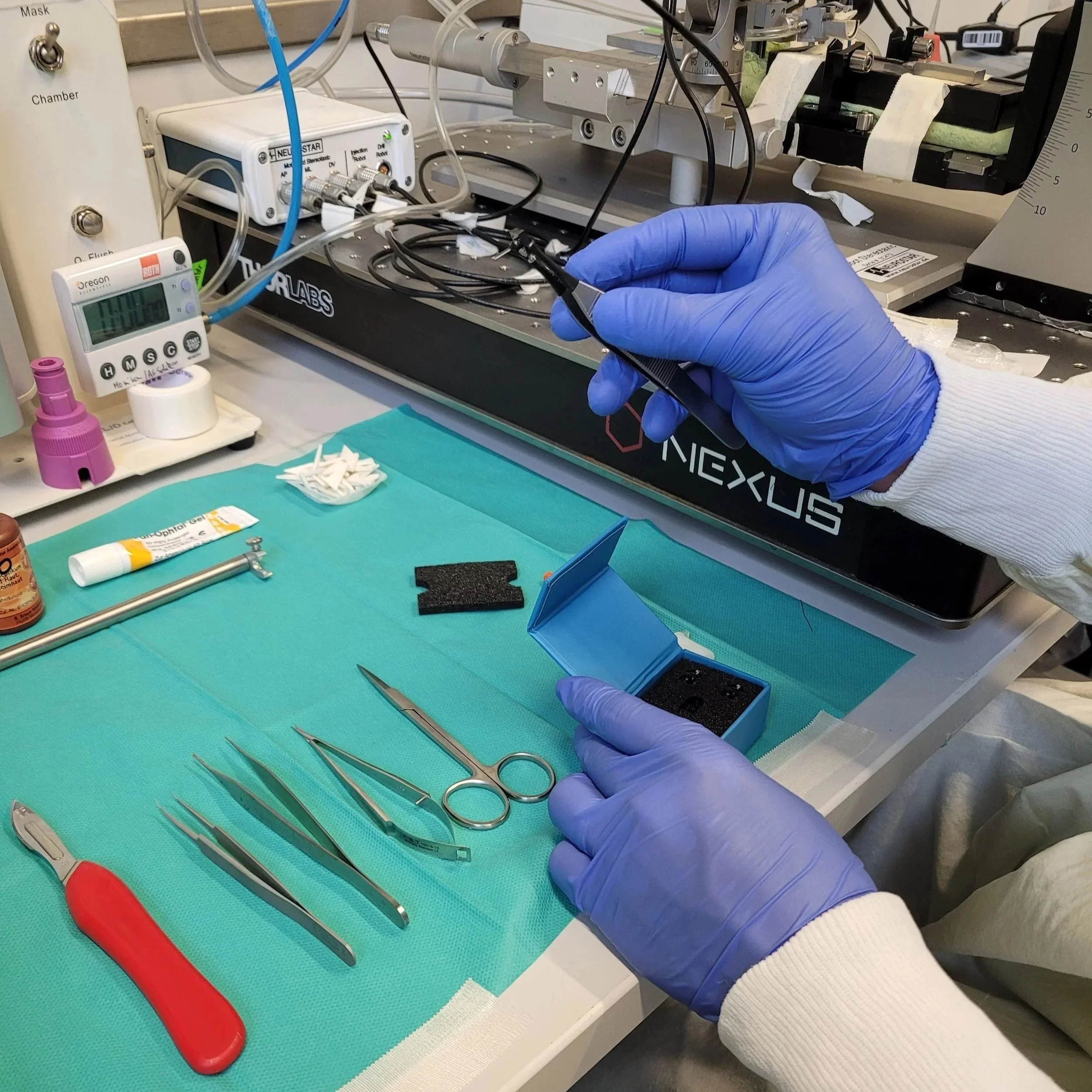 Präzision, Routine und Sicherheit sind entscheidend für erfolgreiche neurochirurgische Eingriffe. In diesem praxisnahen Workshop erwerben Sie die technischen Fertigkeiten und das Hintergrundwissen, die für hochwertige stereotaktische Experimente an Nagetieren erforderlich sind. Unsere erfahrenen Trainerinnen und Trainer begleiten Sie Schritt für Schritt – von den Grundlagen der chirurgischen Vorbereitung über virale Injektionen und Implantationen bis hin zur postoperativen Versorgung. Sie üben alle Arbeitsschritte selbstständig im Labor und erhalten individuelles Feedback, um Ihre Technik gezielt zu optimieren.